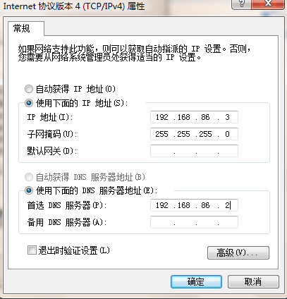 ⒉進行DNS 和IP 地址設(shè)置,打開開始—控制面板—本地連接—Internet 協(xié)議(Tcp/IP)屬性對話框,進行如下圖進行設(shè)置。