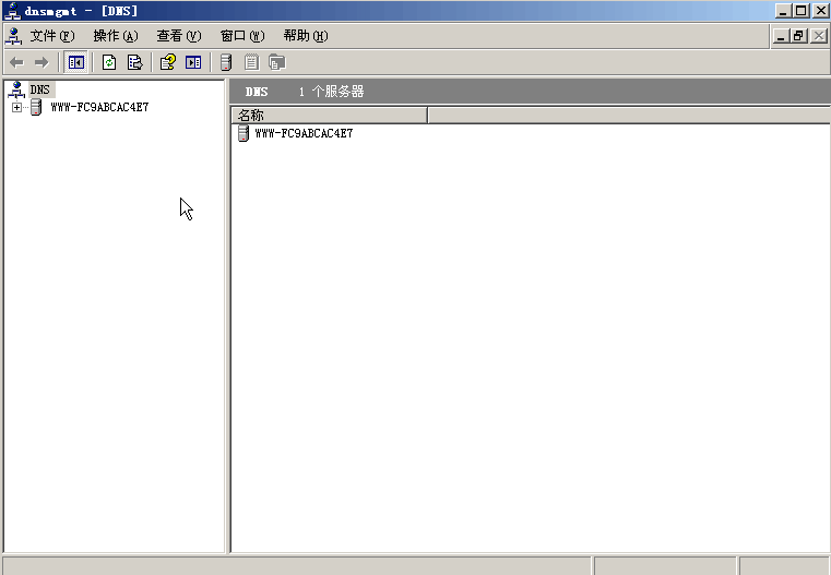 ⑴開始—控制面板—管理工具—DNS, 出現(xiàn)如下圖示。
